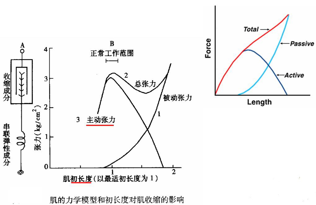 肌肉在不同前负荷时进行收缩所能产生的张力,称为主动张力曲线,就是长度-张力曲线。对于肌肉在等长收缩条件下所产生的主动张力大小来说,存在着一个最适前负荷和与之相对应的最适初长度,在这样的初长度情况下进行收缩,产生的张力最大。