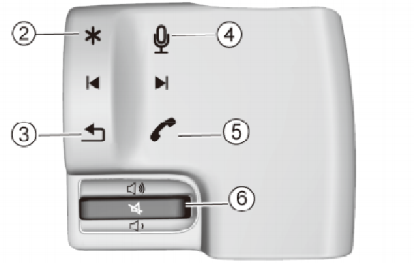 | ② | 音响娱乐系统按键 | 用于音乐、电台功能选择。 |
