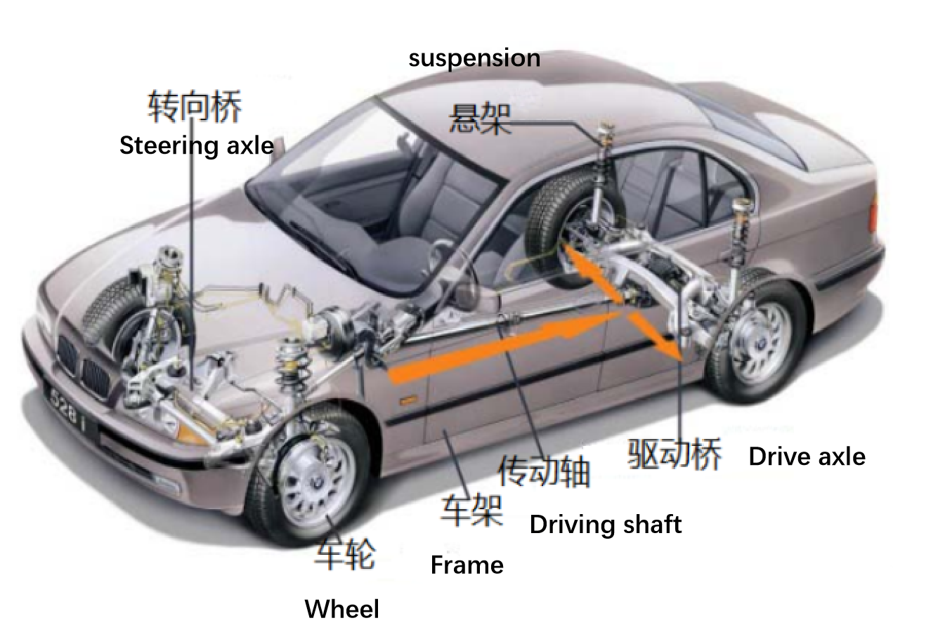 1. 接受传动系统传来的转矩并转化为汽车行驶的驱动力,以保证汽车正常行驶。 2.支承汽车的总质量。 3.传递并支承路面作用于车轮上的反力及其力矩。 4.缓和冲击和振动,保证汽车平顺行驶。 |
