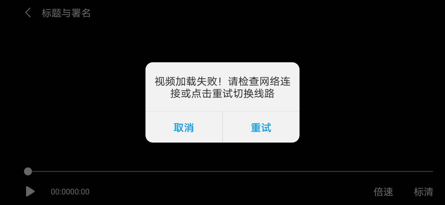 等一会,如上图,弹出“视频加载失败!请检查网络连接或点击重试切换路线”,点击“重试”,就能播放视频啦~