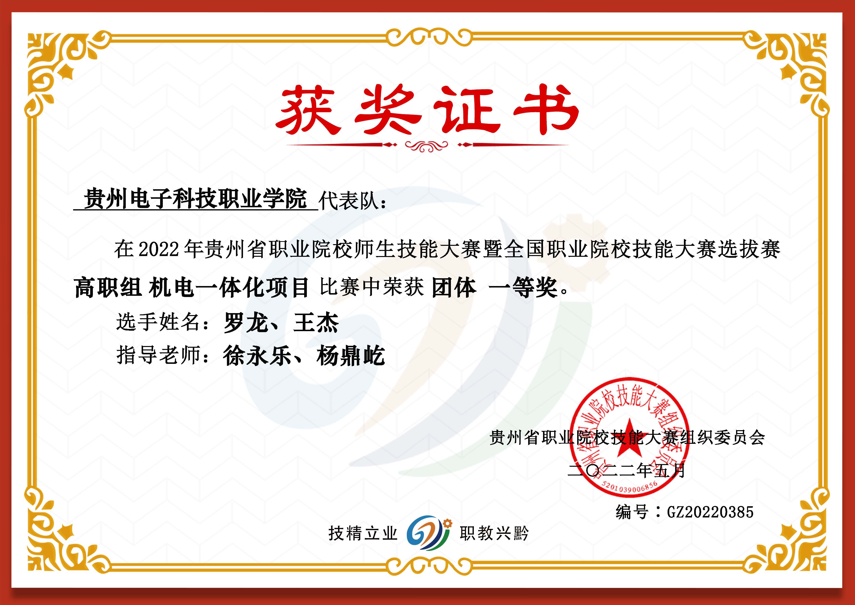 同学们,这是2022年徐永乐、杨鼎屹两位主讲教师,带学生参加全国职业院校技能大赛贵州选拔赛,取得贵州省一等奖第一名的好成绩。相信通过你们的学习,也可以实现自己的梦想。