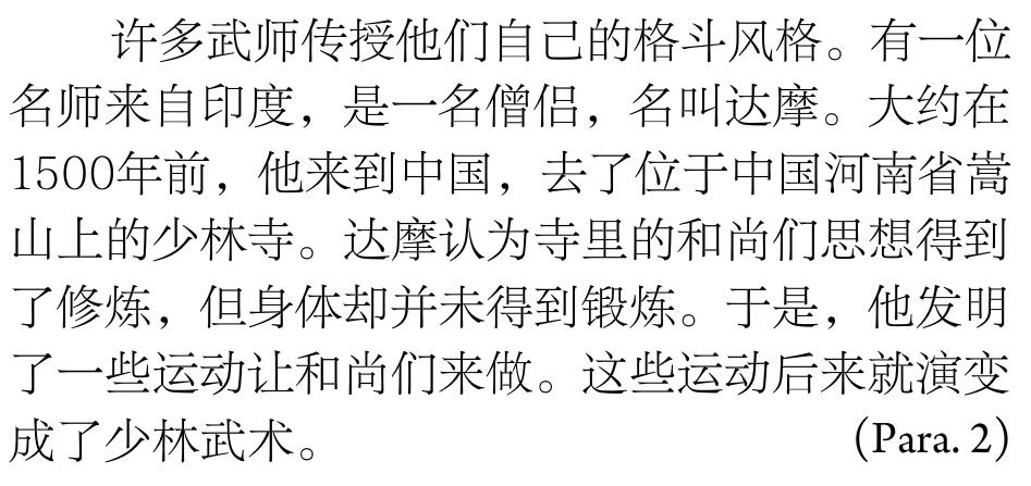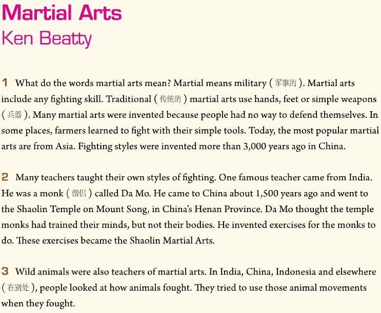 ______ 4. Some martial arts were invented for the purpose of exercising the monks’ bodies.