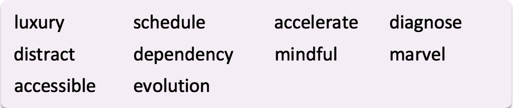 Technology brings us a lot of convenience, but it also takes something away from us. Therefore, we need to be __________ of when we should go off, and then we will get more ________ from unplugging.