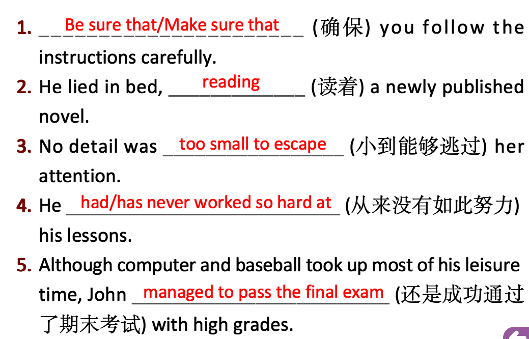 (P142) VII. Complete the following sentences by translating the Chinese given in brackets into English.