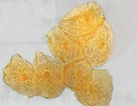 若观察不够清楚,可用醋酸洋红染色(方法同碘液染色)后,再置低倍镜下并转高倍镜观察。可见细胞外围仅有一大致可辩的细胞界限,细胞核呈鲜红色位于细胞中央或近中央,细胞质呈浅红色。
