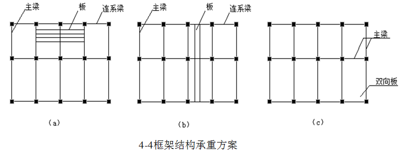 (3)纵横向框架承重。当柱网平面为正方形或接近正方形、或当楼盖上有较大活荷载时,多采用这种承重方案。
