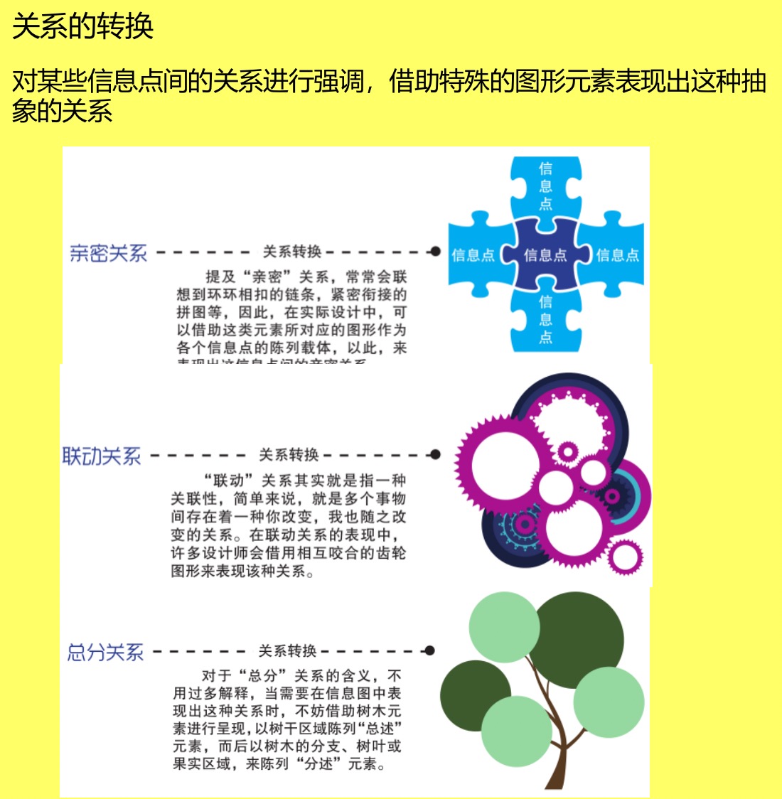 3.关系的转换:对某些信息点间的关系进行强调,借助特殊的图形元素表现出这种抽象的关系