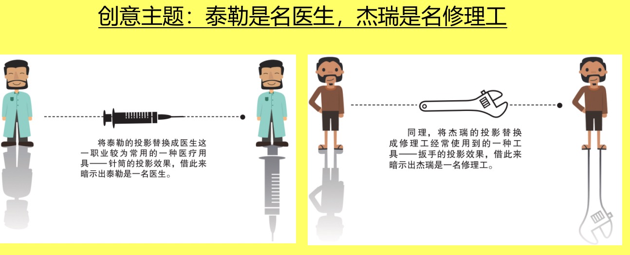 ⑤异影图形:将某事物原本的投影替换为其他事物的投影效果,以揭示主题内涵。