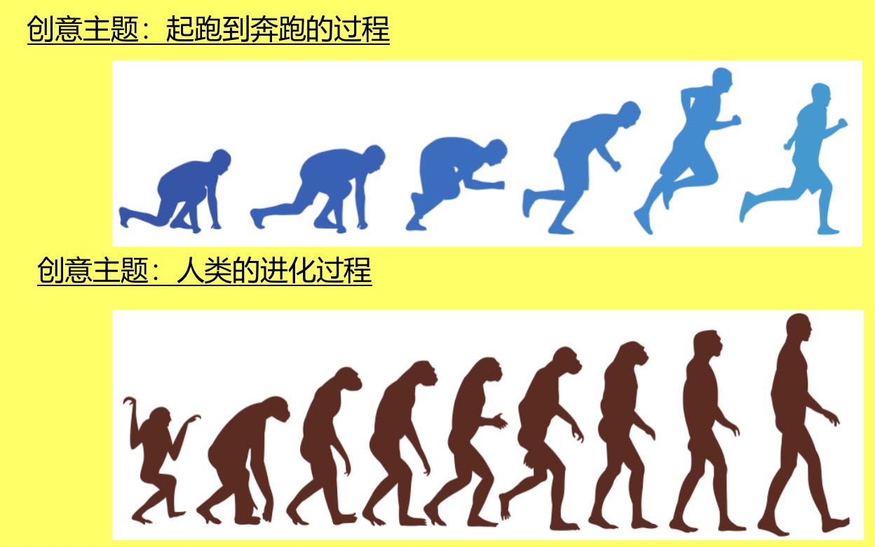 ③渐变图形:由多图形构成的组合式图形,展现某物象的渐变过程。