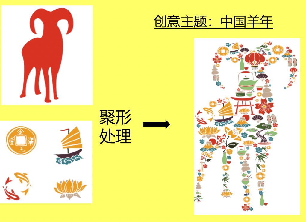 ④聚形图形:将多个图形元素依照设定好的图形轮廓进行拼凑组合,呈现充满视觉凝聚力的聚形效果。