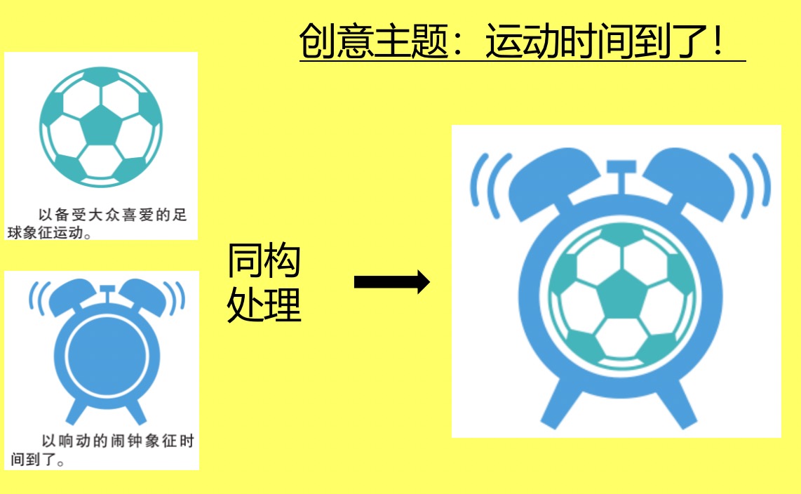 同构图形:将两个或多个存在着某种潜在联系的图形元素组合起来,构建出一个怪诞且荒谬的形象。