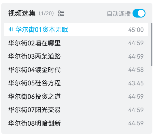影片以华尔街金融危机为契机,以证券市场为中心,梳理两百多年来,现代金融来龙去脉,探寻、发现资本市场兴衰与经济起伏的规律,为决策者提供依据,为资本市场的实践者提供镜鉴,为大众提供关于资本市场的启示。