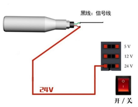 步骤4使用红黑线,将水温传感器原本的外接延长线连接延长。如若水温传感器没有外接延长线,请打开水温传感器顶盖,找出黑色信号线与+24V电源线,使用红黑平行线制作两根线的延长线。