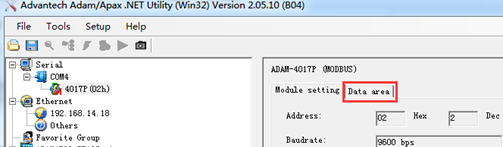 步骤2:双击ADAM4017图标,选择Data area 。