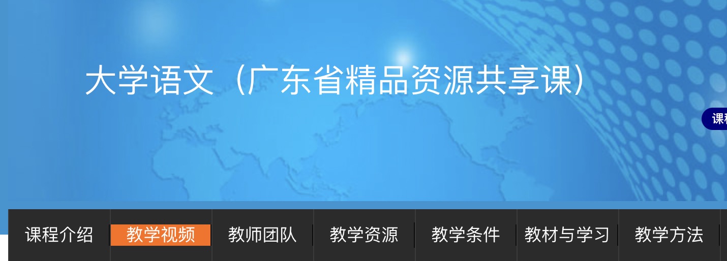 新华学院大学语文教研室共建了一套广东省精品「大学语文」网络课程,覆盖绝大部分期末考核篇目,同时和课堂教学有所差异,形成内容互补。请同学们登录观看,有助于复习巩固课堂知识要点和课外拓展。