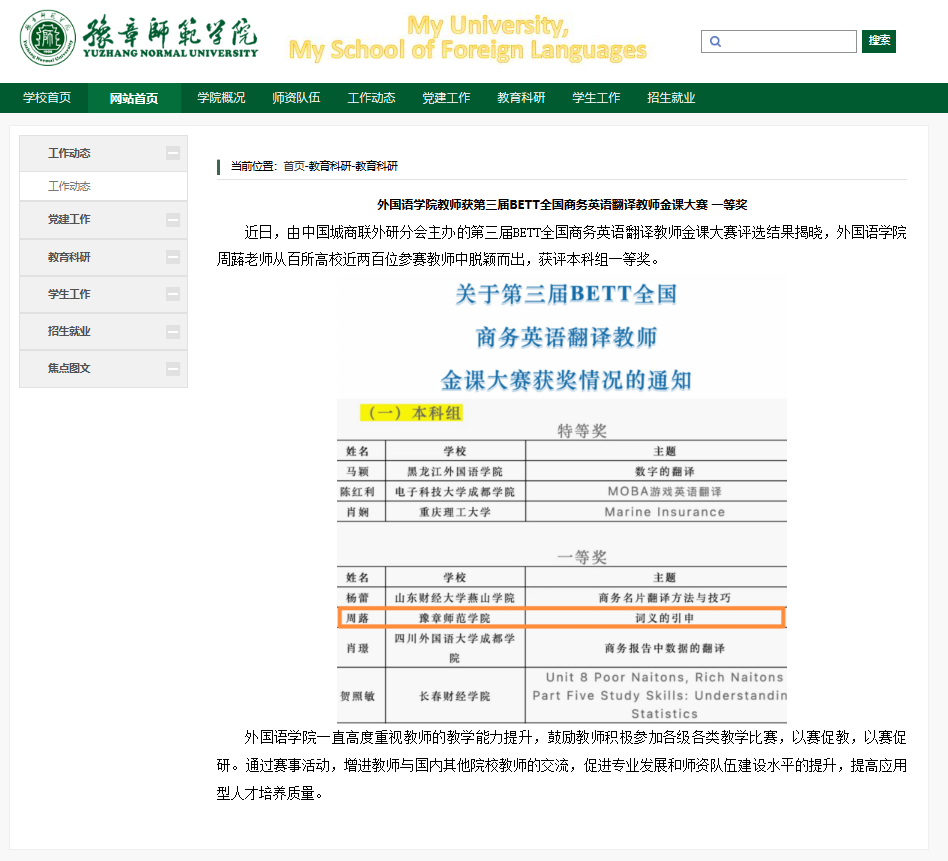● 第四届全国商务英语翻译教师金课大赛特等奖