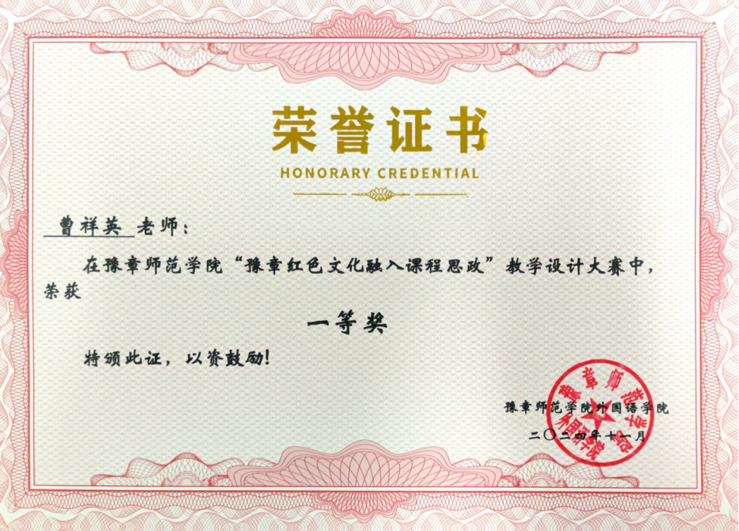 ● 第三届全国商务英语翻译教师金课大赛一等奖
