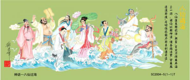 明八仙:汉钟离、张果老、吕洞宾、铁拐李、何仙姑、蓝采和、韩湘子、曹国舅