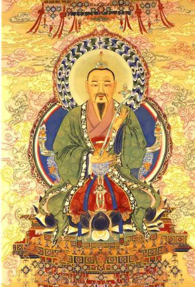 上清灵宝天尊,也称太上大道君,手持太极图或手捧玉如意,象征“混元状态”。