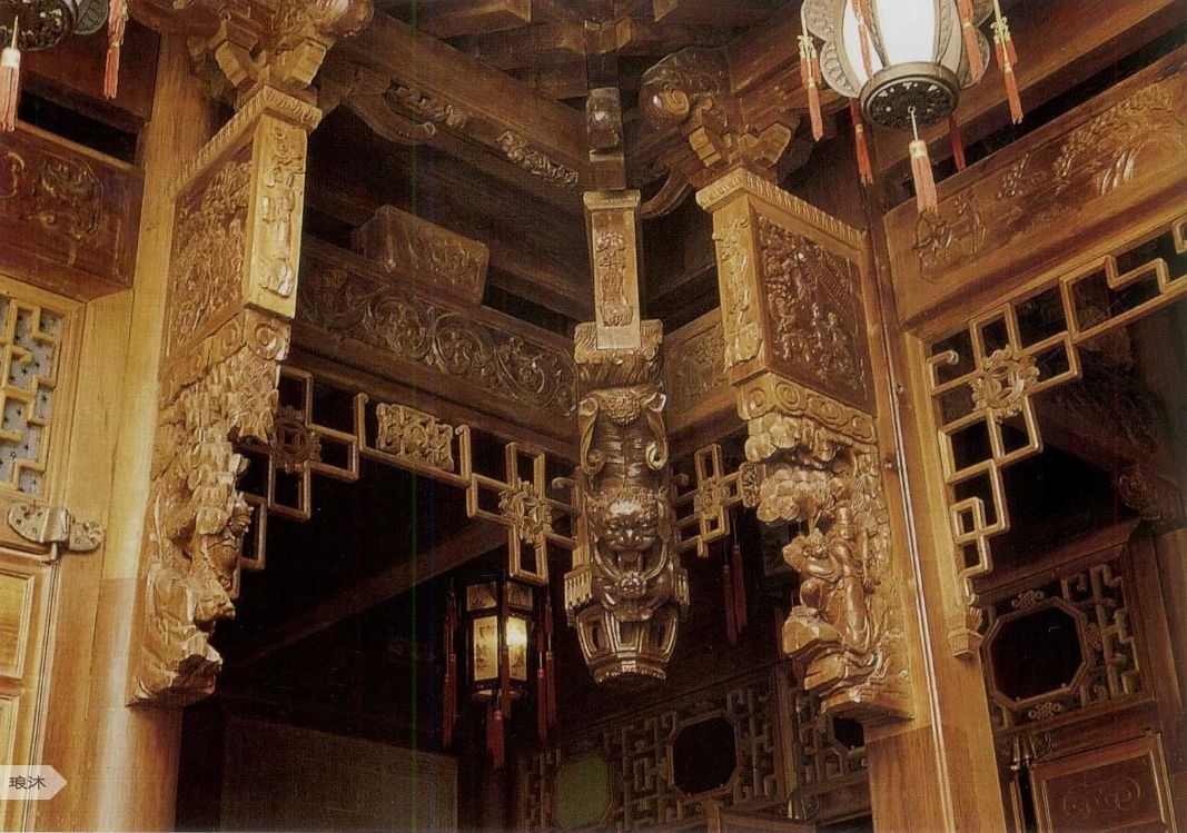 常用松木或楠木制成的圆柱形木头。置于石头(有时是铜器)为底的台上。多根木头圆柱,用于支撑屋面檩条,形成梁架。
