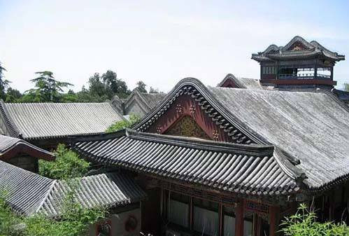 硬山顶:是双坡屋顶形式的一种,山墙同屋面平齐,也有略微高出屋面者,两坡相交处有屋脊。