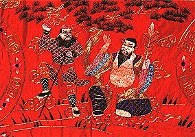 目前传世最早的刺绣,为战国时期湖南长沙楚墓中出土的两件绣品。观其针法,完全用辫子股针法(即锁绣)绣成于帛和罗上,针脚整齐,配色清雅,线条流畅,将图案龙游凤舞,猛虎瑞兽,表现得自然生动,活泼有力,充分显示出楚国刺绣艺术之成就。