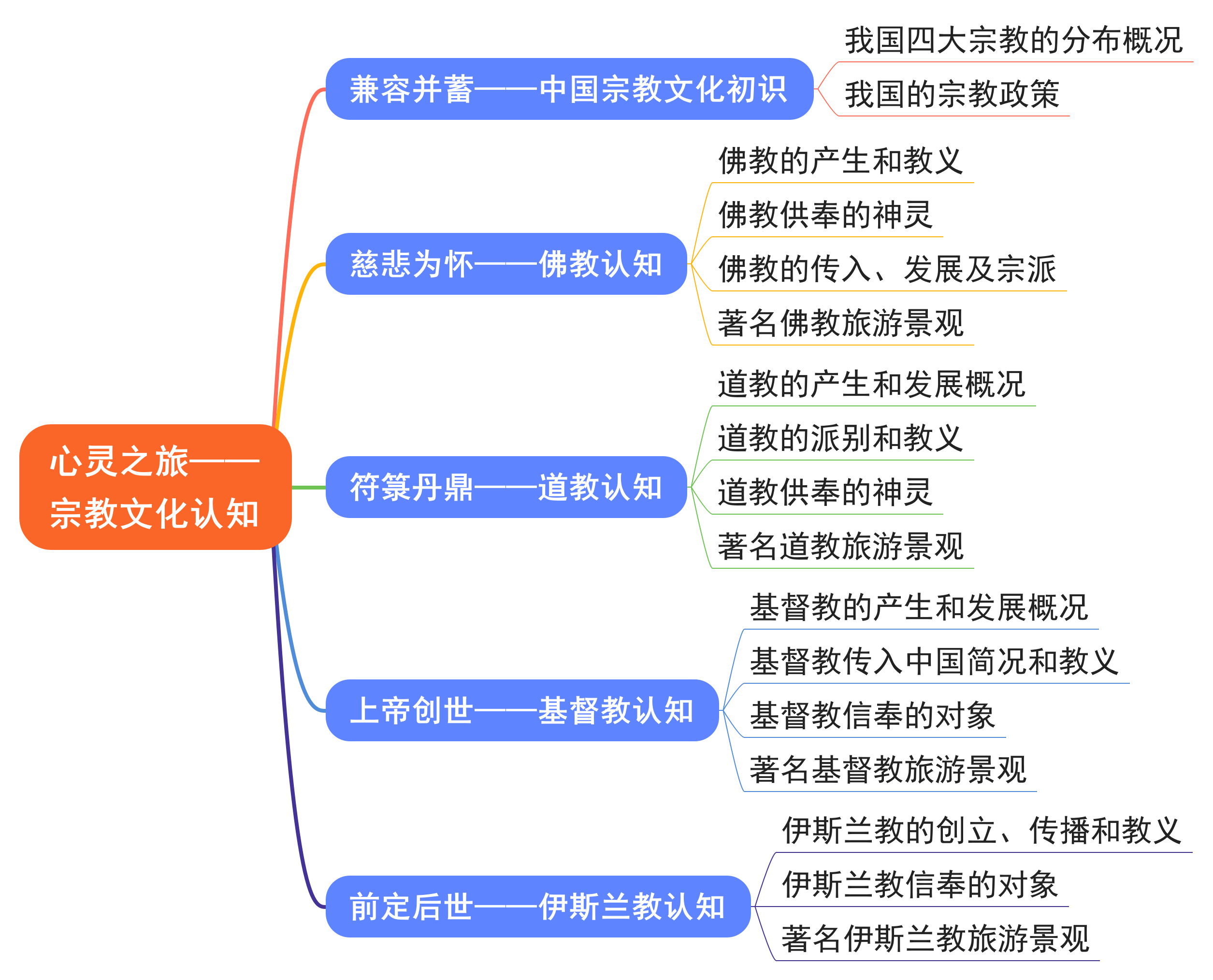 2.了解佛教的产生、教义及佛教供奉的神灵,熟悉佛教的传入、发展及主要宗派;掌握著名佛教旅游景观的相关知识。