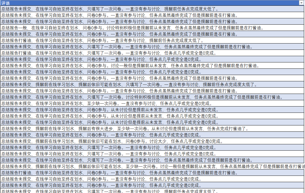 同样的小组或大组成员,成绩差距主要缘于三个方面:个人作业、在线学习数据和面授课表现。