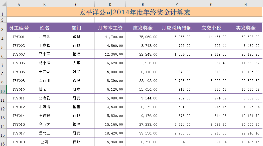 (4)实发奖金=应发奖金-应交个税