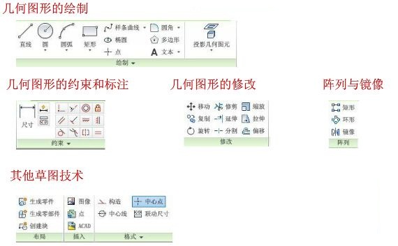 注:重点掌握“两种约束,一个共享”“几何约束”、“尺寸约束”和“共享草图”