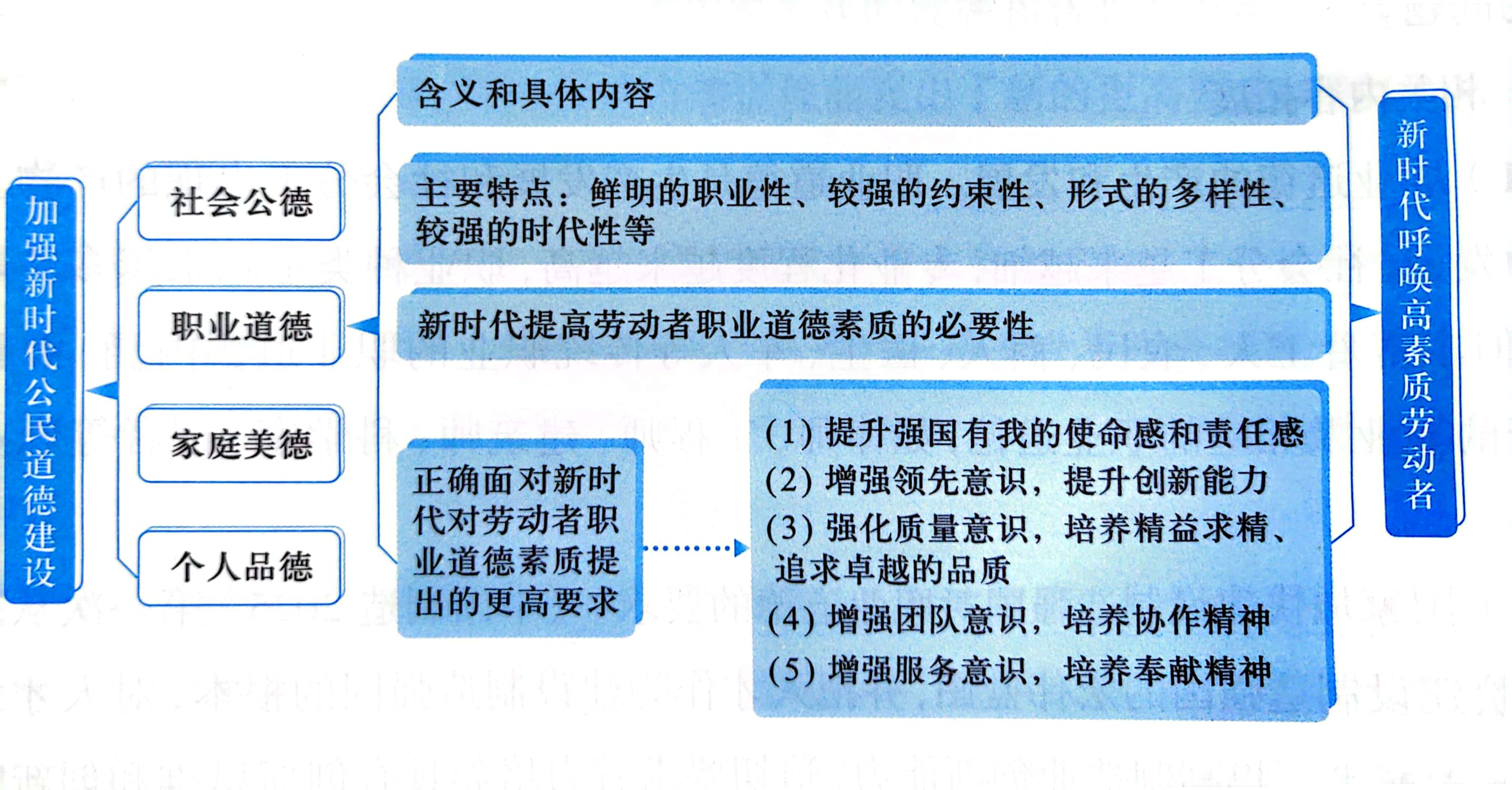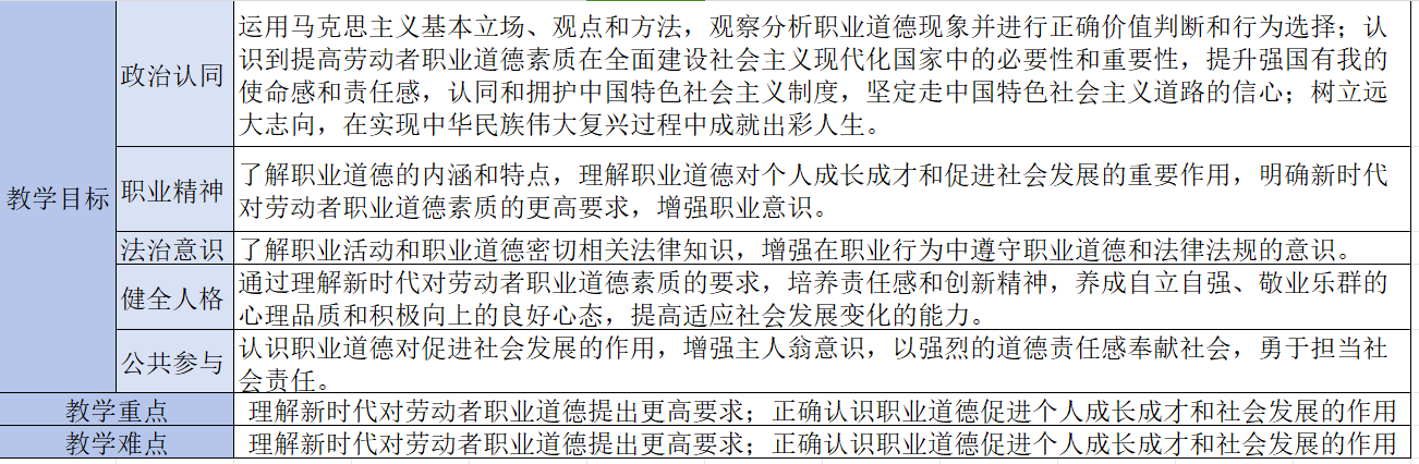 知识 与 技能 (60%) | 课前预习(15分) (1) 课前能完成在线课程本章节预习的(6分),部分完成的(3分),没有完成的不得分。 (2) 课前能完成会计、维修电工、机加工操作员、网络操作员等从业人员的职业道德规范整理,充分的(3分),一般的(1分) (3) 课前能主动参与讨论:职业道德与职业技能孰轻孰重的,并做好资料准备的(3分),一般的(1分) (4) 课前能和同伴一起主动完成对张海礁老师采访分组任务的( 3分),参与的(1分) | ||||