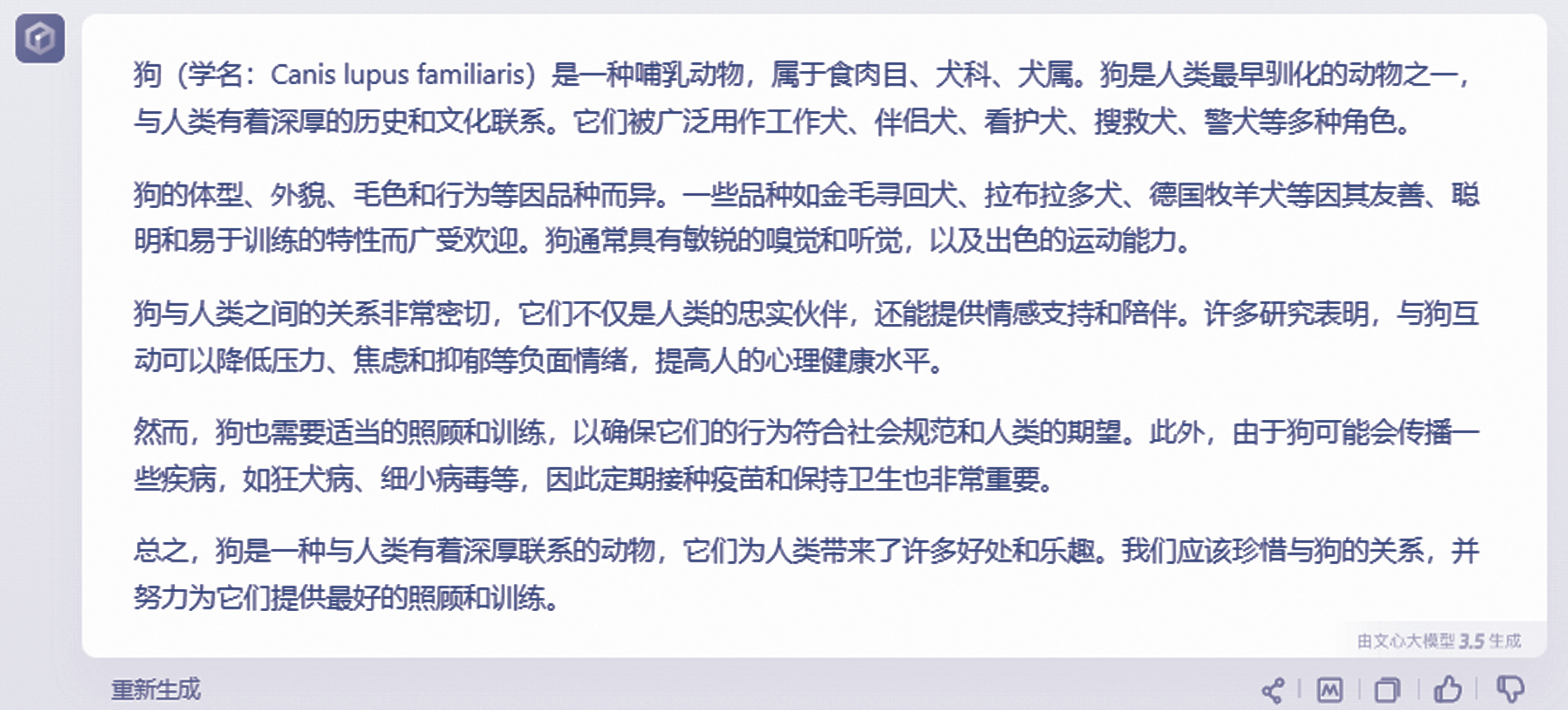 续写型 AI 提示词是在使用人工智能(AI)模型进行文本续写任务时,用户提供给模型的一部分文本或一个短语,它可以作为提示让 AIGC 完成余下的内容。这种提示词的目的是引导 AI 模型生成特定类型或风格的文本续写,以满足用户的期望和需求。比如在文心一言中输入“狗是”作为提示词,目的是了解“狗”相关的内容。