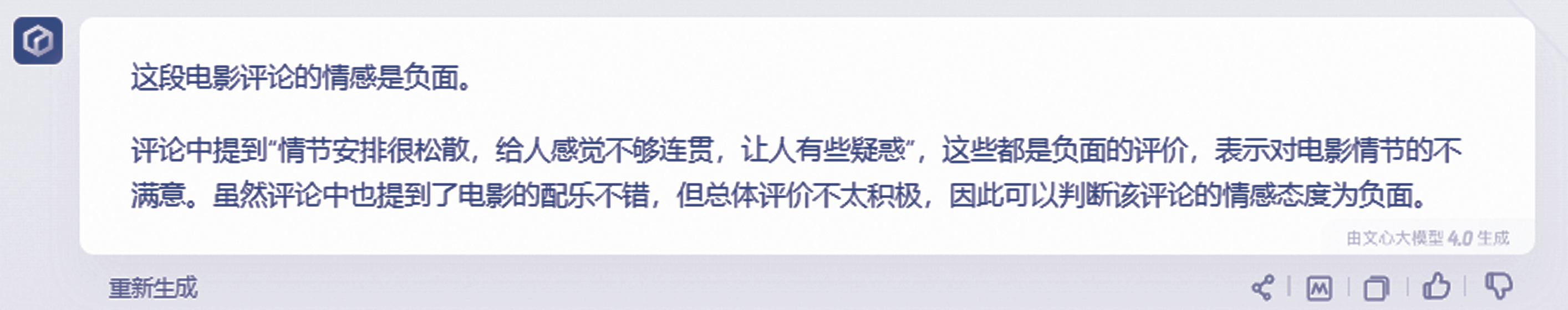 判断以下电影评论的情感。