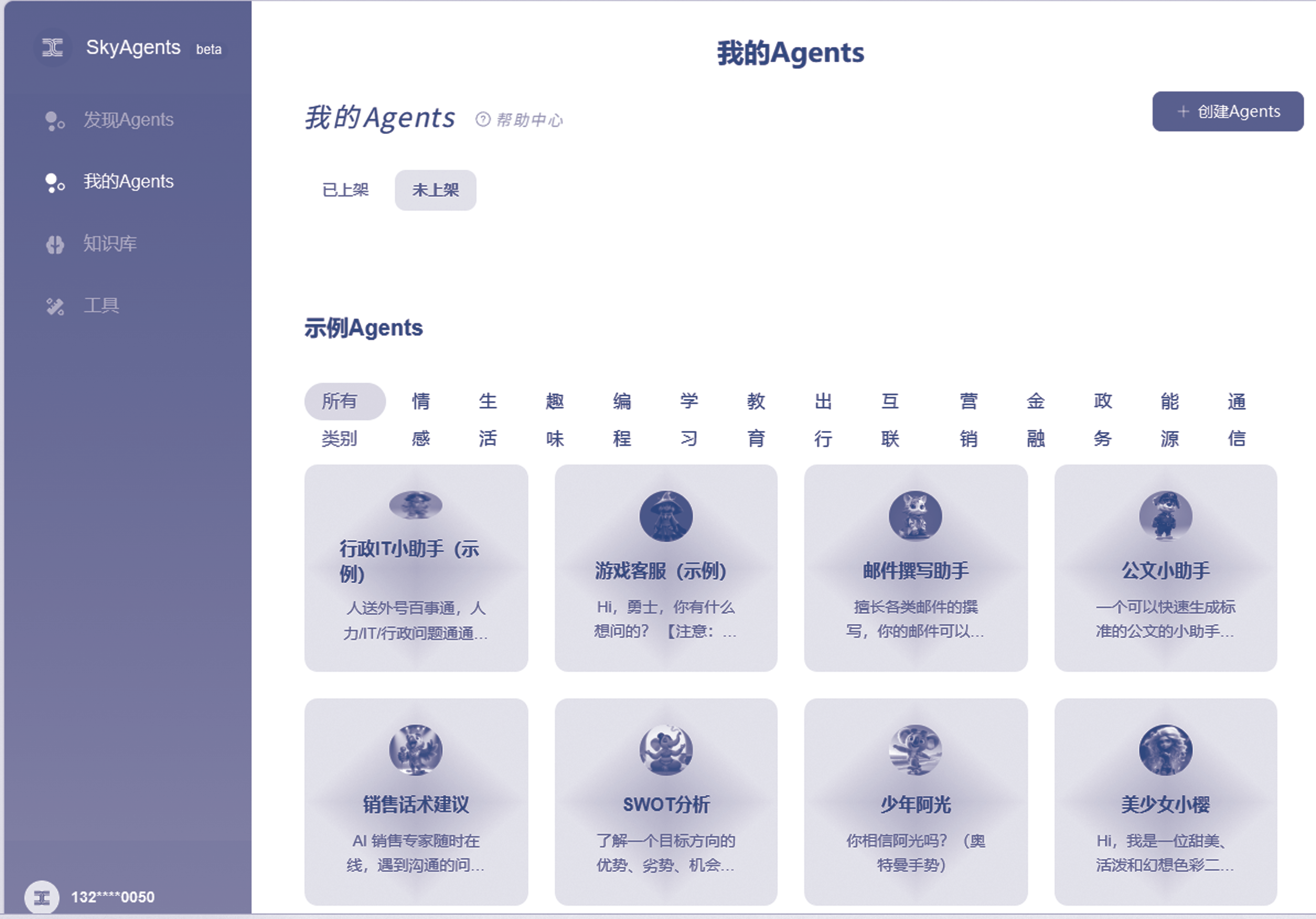 SkyAgents 的核心功能在于提供一个高度模块化的 AI Agents 开发平台,允许用户通过图形界面进行任务设定和部署。用户可以创建自定义的 AI Assistant,这些 能够执行包括问题预设、指定回复、知识库创建与检索、意图识别、文本提取、HTTP请求等多种任务。这些功能的实现不需要用户具备专业的编程知识,大大降低了使用门槛。SkyAgents 的应用场景极为广泛,它可以帮助个人用户完成行业研究报告、单据填写、商标设计、健身计划制定、旅行航班预定等私人定制需求。对于企业用户,SkyAgents 可以拼装成企业 IT、智能客服、企业培训、HR、法律顾问等个性化应用,支持一键服务部署,实现在不同业务系统中的无缝接入。