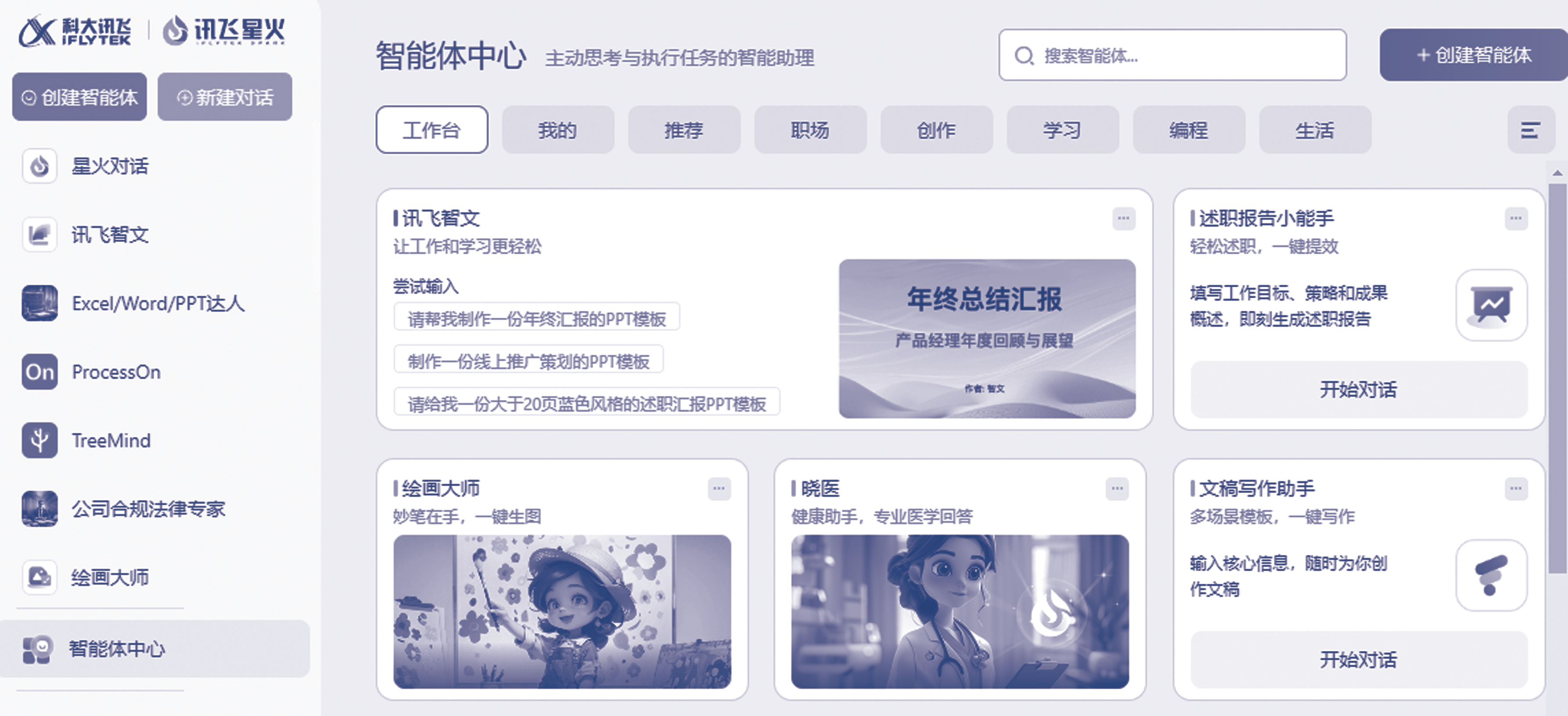 (一)讯飞星火智能体中心具有强大的语音识别能力