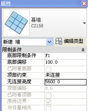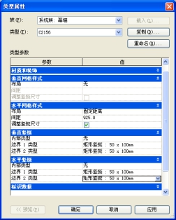本案中的幕墙分割与竖梃是通过参数设置自动完成的,下面按图图 6.1-2所示在幕墙“C2156”的“类型属性”对话框中设置有关参数。