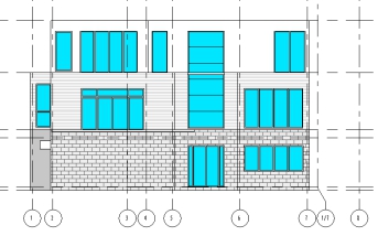 幕墙线直网 参数 平网格样 设置925“调整竖数。 幕墙竖梃”、边界 1   2 选为“矩梃-50x100mm 内部类型 1  边界 2  “矩形竖梃-50x100mm”。 设置完上述参数后,单击“确定”关闭对话框。按照绘制墙一样的方法在 E 轴与 5 轴和 6 轴交点处 的墙上单击捕捉两点绘制幕墙,位置如图 6.1-3所示。