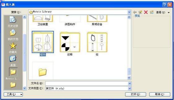 定位到“植物”文件夹—双击“乔木”文件夹—选择“白杨.rfa”—“ 确定”载入到项目中。