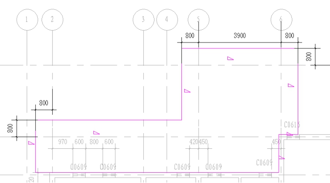 下面使用“迹线屋顶”命令创建项目北侧二层的多坡屋顶。