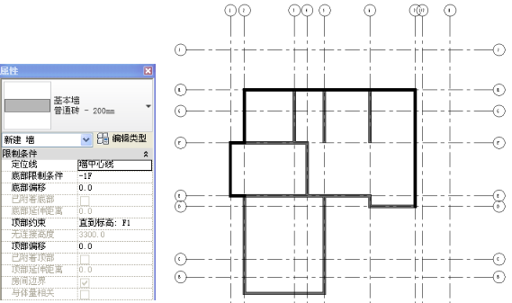 l选项卡“建筑”—“墙”—“普通砖-240 mm”类型—“绘制”—“直线”—“定位线: