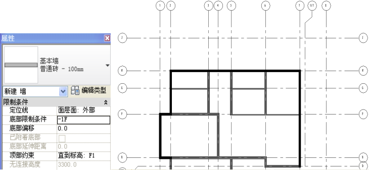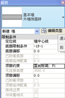 l设置属性—设置实例参数“底部限制条件”为“-1F”,“ 顶部限制条件”为“直到标