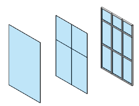 幕墙默认有三种类型:幕墙、外部玻璃、店面