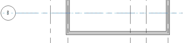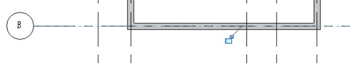 ,移动光标单击拾取 B轴线作为对齐目标位置, 再移动光标到 B 轴下方的墙上,按 Tab 键拾取墙的中心线位置单击拾取,移动墙的位置,使其中心线与 B 轴对齐,如图 4.4-1 所示。