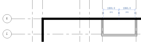 ,如图 4.4-4所示移动光标到 H 轴上的墙 5、6 轴之间任意位 置,单击鼠标左键将墙拆分为两段。