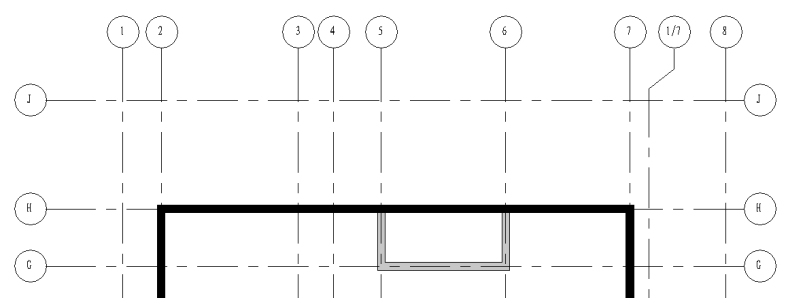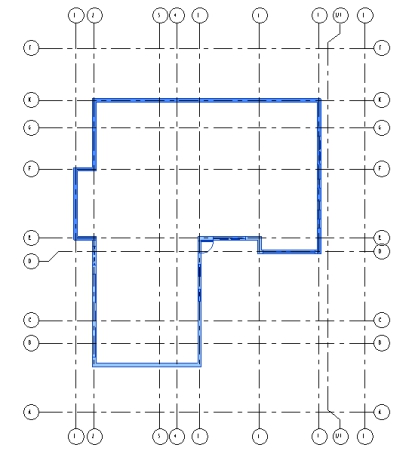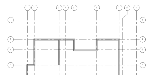 3)打开 F1 平面,点击墙命令激活“绘制”面板,“定位线”选择“墙中心线”,移动光标单击鼠标左键 捕捉 H 轴和 5 轴交点为绘制墙体起点,然后逆时针单击捕捉 G 轴与 5 轴交点、G 轴与 6 轴交点、H 轴与