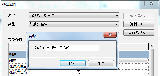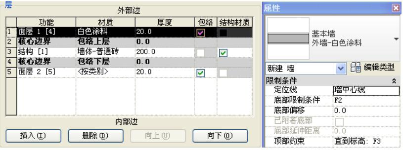 ⑤新建外墙“基本墙:外墙—白色涂料”,结构如下图,选择二层外墙,在类型选择器中将墙体替换为“基本墙:外墙-白色涂料”,更新所有外墙类型。