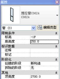 ③编辑窗台高:在平面视图中选择窗,设置属性,设置参数“底高度”参数值,调整窗户的窗台高。