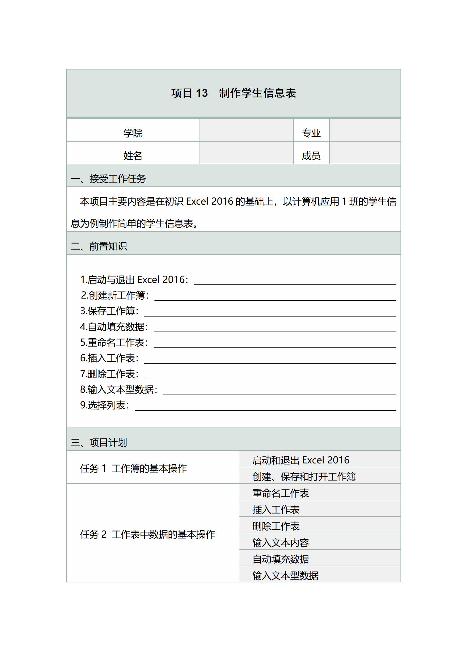 项目 制作学生信息表