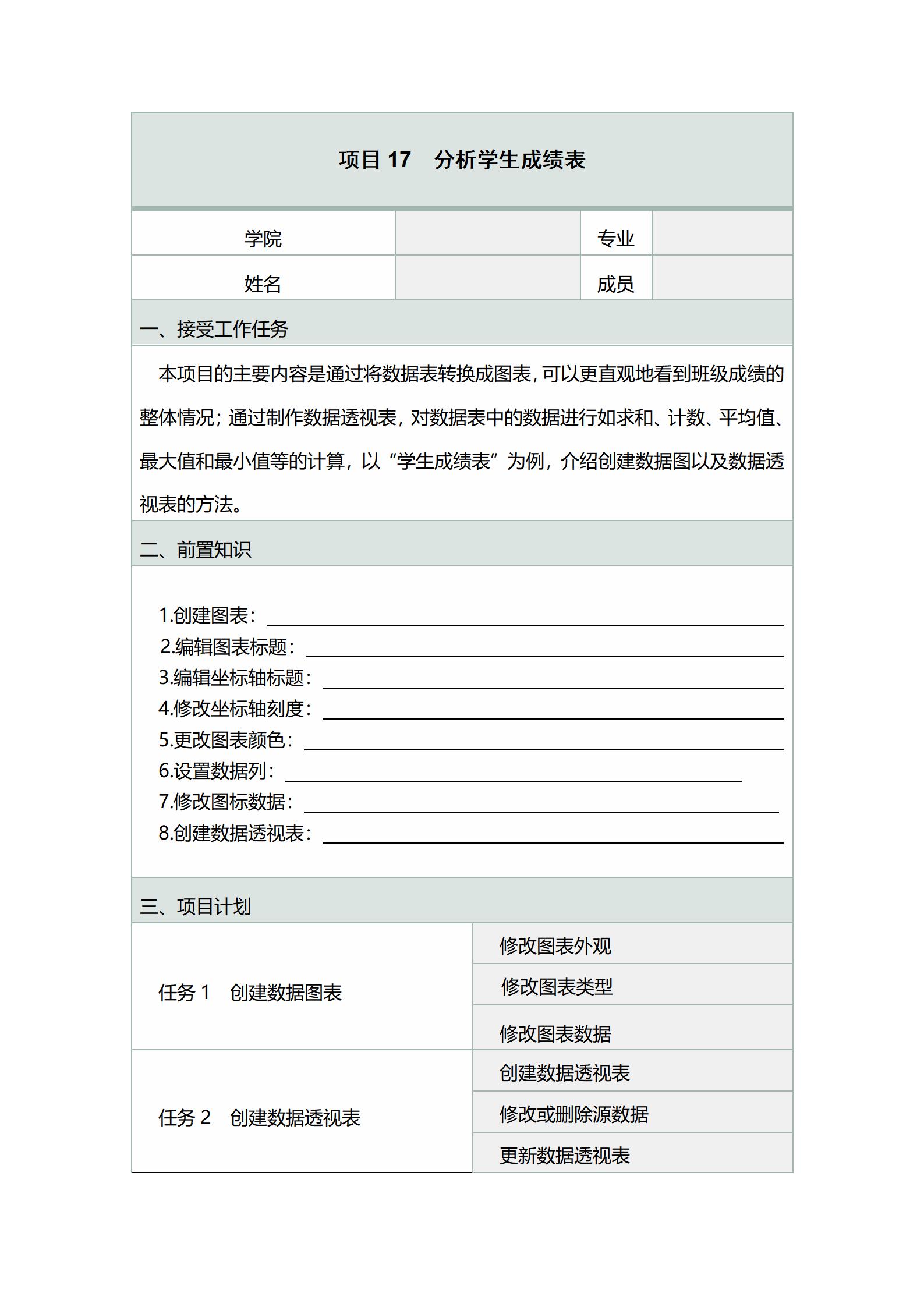 项目 分析学生成绩表