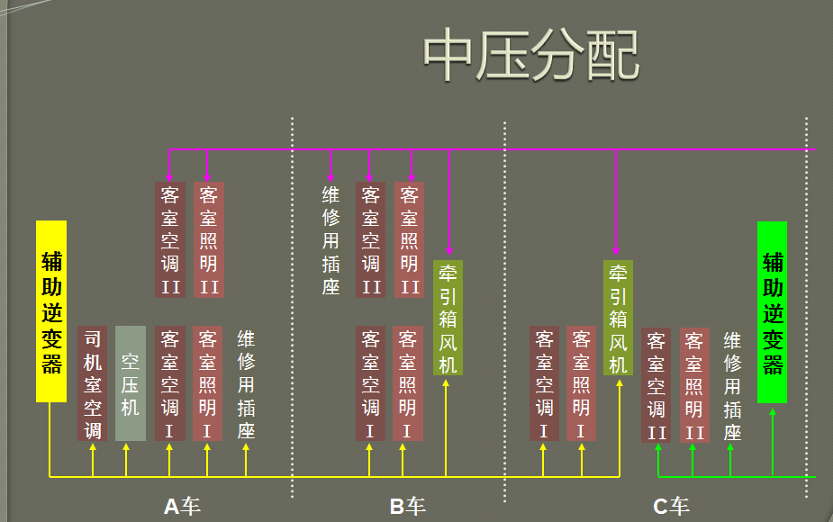 1、城轨车辆辅助供电电路负载分配;